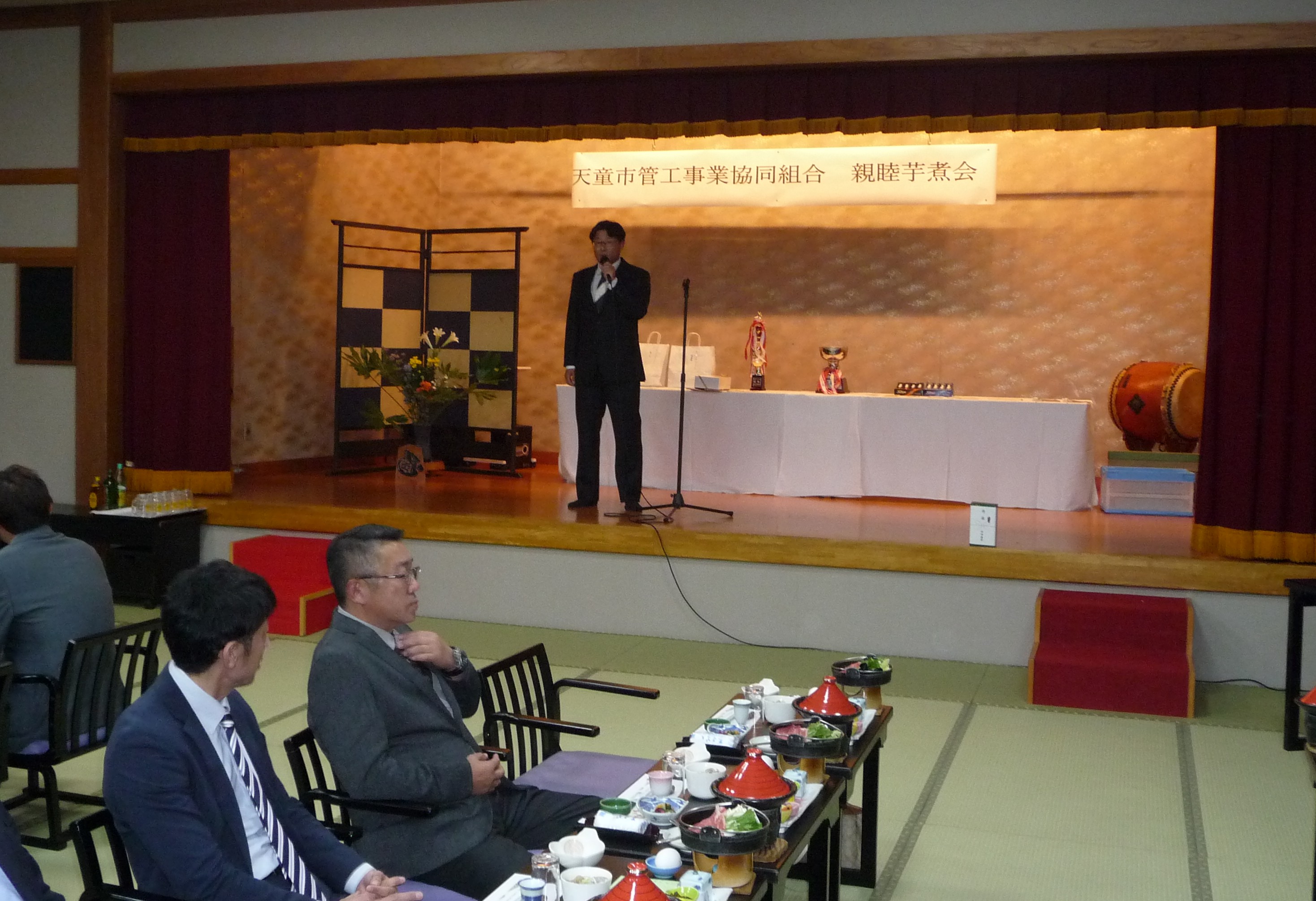 その後、天童温泉のあづま荘にて行った芋煮会では、レクリエーション大会の表彰式やお楽しみ抽選会などを行い、和気あいあいとした雰囲気の中、親睦を深めることができました。